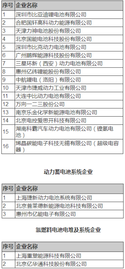 附件一:汽車動(dòng)力蓄電池和氫燃料電池行業(yè)白名單(第一批)