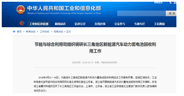 6月25日,從工業(yè)和信息化部網(wǎng)站獲悉,工信部將推進(jìn)長三角新能源汽車動力蓄電池回收利用試點工作。