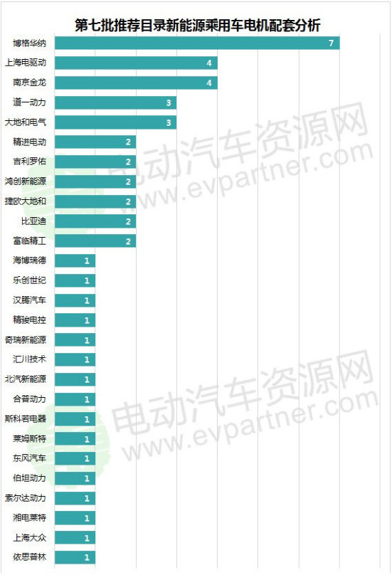 電機(jī)配套企業(yè)方面,電動(dòng)汽車資源網(wǎng)了解到,此次推薦目錄的新能源乘用車由27家電機(jī)企業(yè)(含組合)提供配套,分別為:博格華納(7)、南京金龍(4)、上海電驅(qū)動(dòng)(4)、大地和電氣(3)、道一動(dòng)力(3)、富臨精工(2)、比亞迪(2)、捷歐大地和(2)、鴻創(chuàng)新能源(2)、吉利羅佑(2)、精進(jìn)電動(dòng)(2)、依思普林(1)、上海大眾(1)、湘電萊特(1)、索爾達(dá)動(dòng)力(1)、伯坦動(dòng)力科技有限公(1)、東風(fēng)汽車(1)、萊姆斯特(1)、斯科若電器(1)、合普動(dòng)力(1)、北汽新能源(1)、匯川技術(shù)(1)、奇瑞新能源(1)、精駿電控(1)、漢騰汽車(1)、樂創(chuàng)世紀(jì)(1)、海博瑞德(1)。