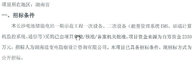 長(zhǎng)沙電池儲(chǔ)能電站一期示范工程一次設(shè)備、二次設(shè)備(能量管理系統(tǒng)EMS、站端計(jì)算機(jī)監(jiān)控系統(tǒng)、通信等)采購(gòu)招標(biāo)公告