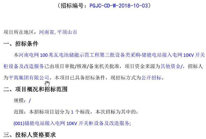 招標(biāo): 河南電網(wǎng)100兆瓦儲(chǔ)能電站 10KV開(kāi)關(guān)柜設(shè)備及改造服務(wù)招標(biāo)公告