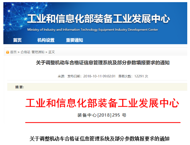 為進一步貫徹落實“放管服”要求,方便企業(yè)應(yīng)用機動車合格證信息系統(tǒng)進行乘用車雙積分配置ID填報、新能源汽車免征車輛購置稅標(biāo)記、掛車減征車輛購置稅標(biāo)記、多電機新能源車輛信息填報、正三輪摩托車輪距參數(shù)填報等工作,我中心對機動車合格證信息管理系統(tǒng)進行了調(diào)整優(yōu)化,現(xiàn)將有關(guān)事項及要求通知如下: