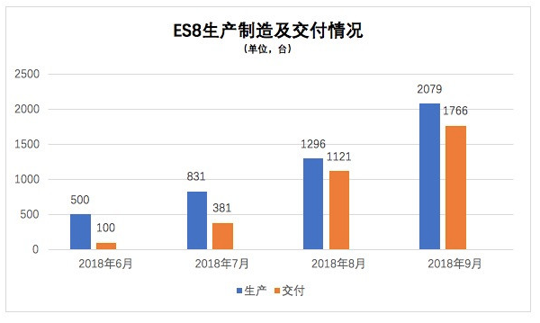 具體來看,2018年第三季度蔚來汽車生產(chǎn)共4206輛ES8,交付3268輛,比起第二季度100輛的交付量提升了3168.0%。此外,10月份的交付量為1573輛,蔚來汽車在財報中解釋,受到了國慶黃金周的影響,10月交付速度有所放緩。