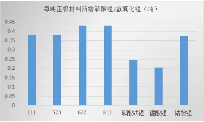 細(xì)化來看,不同正極材料對碳酸鋰的使用量不同,三元明顯高于磷酸鐵鋰和錳酸鋰材料。