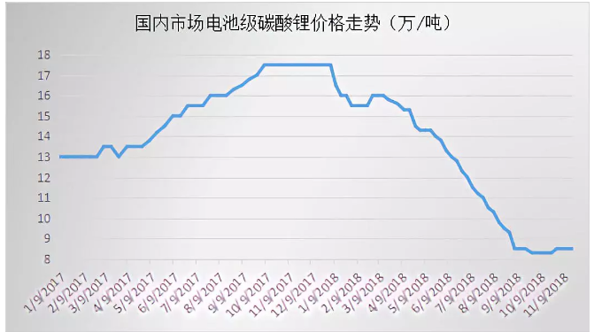 2018年的價格走勢上,電池級碳酸鋰的表現(xiàn)比較搶眼,從5月份一口氣跌到了9月份,價格直接腰斬之后才趨于穩(wěn)定。對此,主要是碳酸鋰的供求關(guān)系出現(xiàn)逆轉(zhuǎn)導(dǎo)致的,我們也早在5月份就給出過預(yù)警,詳文可參見《如果你還在投資碳酸鋰,下半年要小心了》(可直接點(diǎn)擊查看),在此不再贅述。