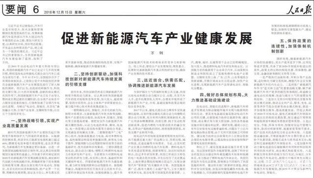 12月15日,全國政協(xié)副主席、中國科學(xué)技術(shù)協(xié)會主席萬鋼在《人民日報》第6版發(fā)表了以“促進新能源汽車產(chǎn)業(yè)健康發(fā)展”為主題的文章,全文從戰(zhàn)略導(dǎo)向、科技創(chuàng)新、供需匹配、基礎(chǔ)設(shè)施以及政策體制五個方面,對新能源汽車的發(fā)展進行把脈建言。