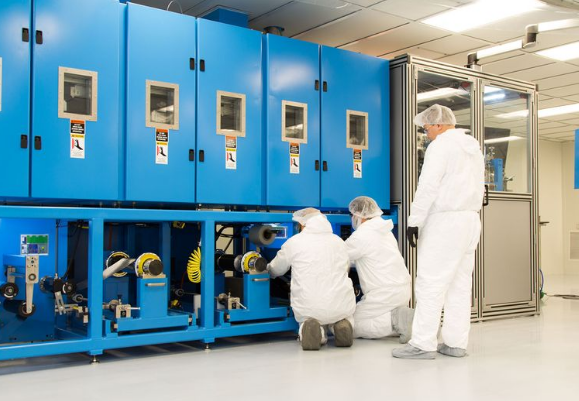 工人們?cè)赟olid Power位于科羅拉多州路易斯維爾的試生產(chǎn)工廠檢查用于開發(fā)固態(tài)電池的設(shè)備