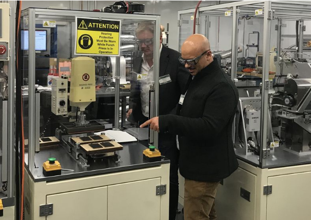 Henrik Fisker和首席科學(xué)家Fabio Albano博士正在洛杉磯的Fisker固態(tài)技術(shù)實(shí)驗(yàn)室檢查設(shè)備