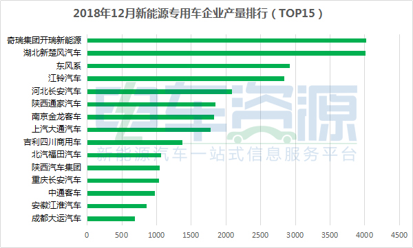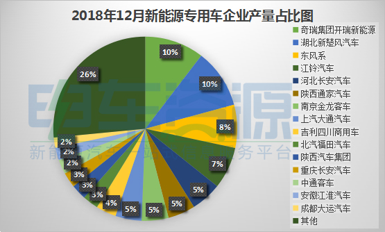 2018年12月新能源專用車產(chǎn)量達(dá)3.86萬(wàn)輛,開瑞新能源/新楚風(fēng)/東風(fēng)排前三