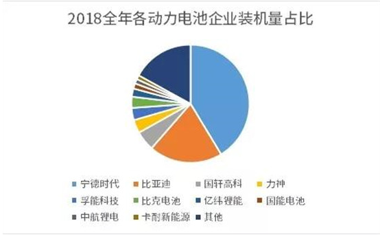 根據(jù)動力電池應(yīng)用分會研究部統(tǒng)計數(shù)據(jù)顯示,2018全年我國新能源汽車動力電池裝機總量為56.89GWh。裝機總電量排名前十動力電池企業(yè)合計約47.20GWh,占整體的83%。其他企業(yè)占領(lǐng)的裝機量份額僅為17%。其中,寧德時代以23.43GWh高居榜首,占比41.19%;比亞迪裝機量為11.43GWh位列第二,占比20.1%。僅這兩家企業(yè)就占據(jù)了全年裝機量的61.29%。