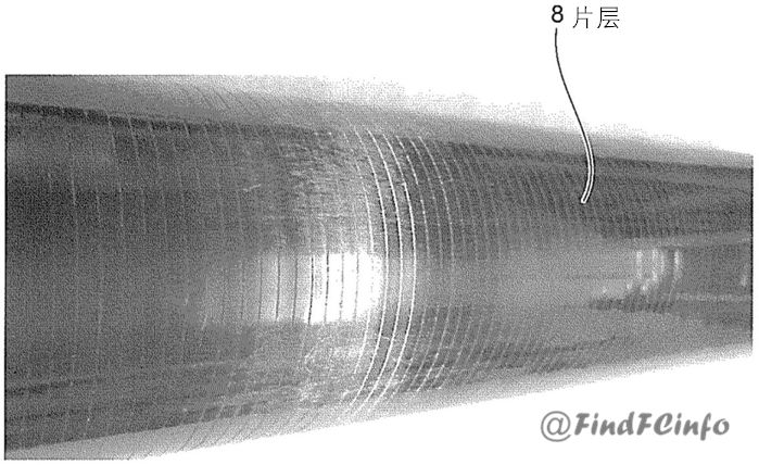 ,其中σ為罐的周向的拉伸應力;t為分割片狀纖維的厚度;w為分割片狀纖維的寬度;L為罐的圓筒部的長度;A為樹脂的剪切強度。通過分隔卷繞工序,能夠以更均勻的張力來卷繞分割的片狀纖維,防止在片層中出現(xiàn)不均勻的層疊部分。