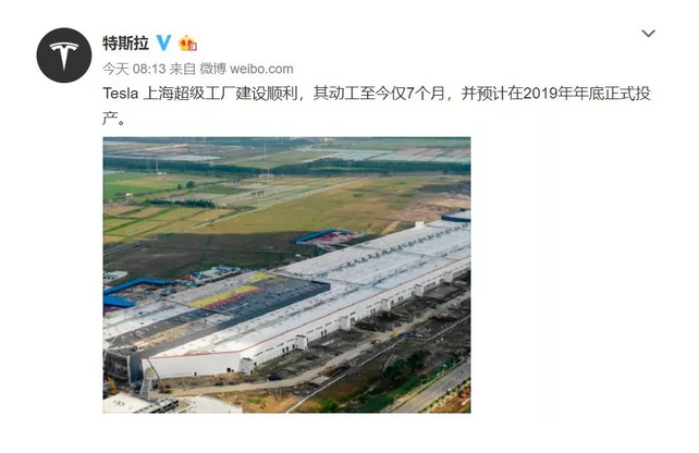 8 月 7 日,特斯拉中國官微發(fā)出一條上海超級工廠 Gigafactory 3 的建設進度圖。并配文「Tesla 上海超級工廠建設順利,其動工至今僅 7 個月,并預計在 2019 年年底正式投產(chǎn)?!谷鐭o意外,國產(chǎn) Model 3 會在 5 個月內(nèi)下線。