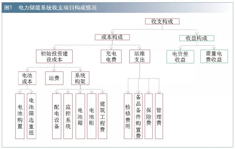 (二)本次研究投資回報(bào)周期測算基礎(chǔ)模型。初始投資建設(shè)成本(設(shè)為C)有以下3方面構(gòu)成:電池成本(設(shè)為C電池)、運(yùn)輸成本(設(shè)為C運(yùn)輸)、系統(tǒng)構(gòu)架成本(設(shè)為C構(gòu)架)。系統(tǒng)運(yùn)營成本有以下2方面構(gòu)成:充電電費(fèi)支出(設(shè)為C充電)和系統(tǒng)運(yùn)維成本(設(shè)為C運(yùn)維)。收益來源可包含2方面:削峰填谷下的電價(jià)差收益(設(shè)為P電價(jià)差)和需量電費(fèi)收益(設(shè)為P需量)。綜上,投資回報(bào)周期(設(shè)為T)測算模型為C電池+C運(yùn)輸+C構(gòu)架+C運(yùn)維×T=(P電價(jià)差+P需量)×T。本次研究在投資回報(bào)周期內(nèi),對(duì)系統(tǒng)設(shè)備折舊不作考慮,儲(chǔ)能用電池更換費(fèi)用計(jì)入運(yùn)維成本支出中,詳細(xì)成本和收益項(xiàng)目構(gòu)成如圖1所示。