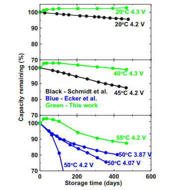 論文中指出,“選擇的陰極材料NCM 523(50%鎳,20%鈷,30%錳)是穩(wěn)定的,是進(jìn)一步發(fā)展的良好參考和起點(diǎn)。探索的其他關(guān)鍵組分包括石墨陽極、溶劑、添加劑和電解質(zhì)溶液鹽的混合物”。