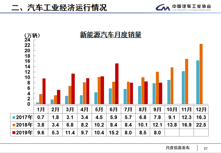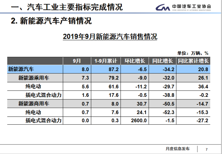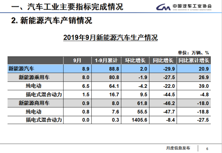 2019年1-9月累計(jì)來(lái)看,新能源汽車(chē)產(chǎn)銷(xiāo)分別完成88.8萬(wàn)輛和87.2萬(wàn)輛,比上年同期分別增長(zhǎng)20.9%和20.8%。