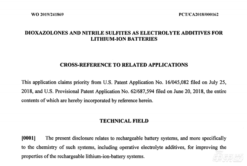 據(jù)國(guó)外媒體electrek報(bào)道,今年年底,特斯拉通過(guò)旗下的特斯拉汽車(chē)加拿大分公司申請(qǐng)了一項(xiàng)名為《二惡唑酮和亞硫酸氰作為鋰離子電池電解液添加劑》(Dioxazolones and nitrile sulfites as electrolyte additives for lithium-ion batteries)的國(guó)際專(zhuān)利。
