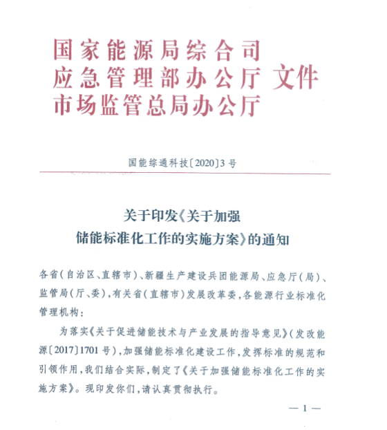 今日,記者從國(guó)家能源局網(wǎng)站獲悉,由國(guó)家能源局會(huì)同應(yīng)急管理部、國(guó)家市場(chǎng)監(jiān)督管理總局共同制定的《關(guān)于加強(qiáng)儲(chǔ)能標(biāo)準(zhǔn)化工作的實(shí)施方案》通知正式公開發(fā)布。