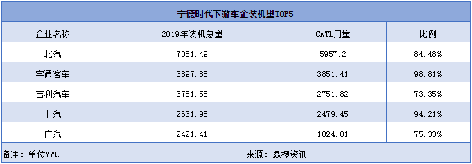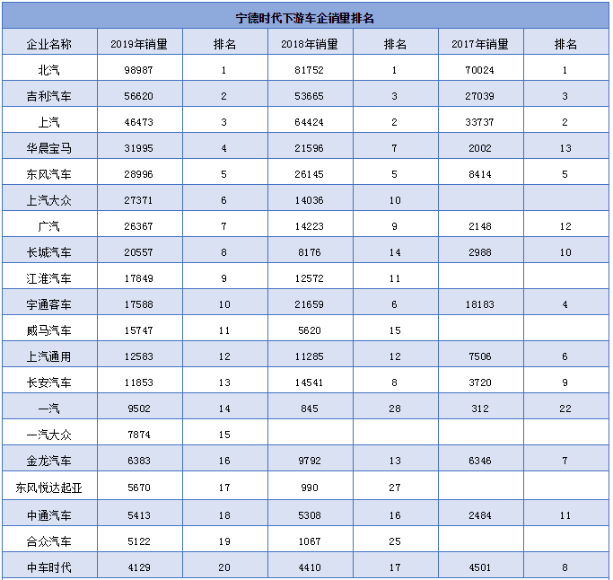 2019年寧德時代下游合作車企共79家,覆蓋自主品牌、合資以及造車新勢力,近兩年有連續(xù)裝機(jī)量數(shù)據(jù)企業(yè)數(shù)量為55家,銷量總和占比達(dá)到99.99%。根據(jù)17-19年寧德時代下游車企裝機(jī)量數(shù)據(jù)來看,三年間共涉及100家下游車企,每年大約以20家左右的尾部淘汰完成產(chǎn)業(yè)鏈“新陳代謝”。