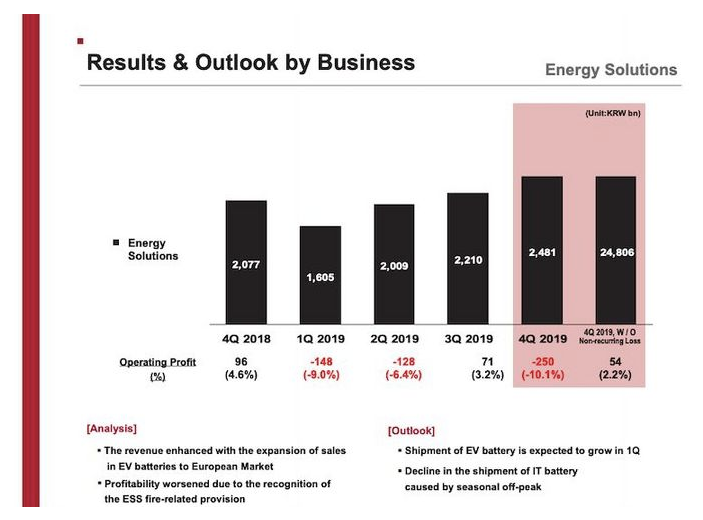 ▲LG化學(xué)2019年電池業(yè)務(wù)營收利潤情況