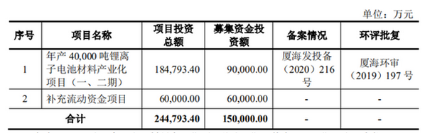 擬募資15億元建年產(chǎn)4萬噸鋰電材料項(xiàng)目