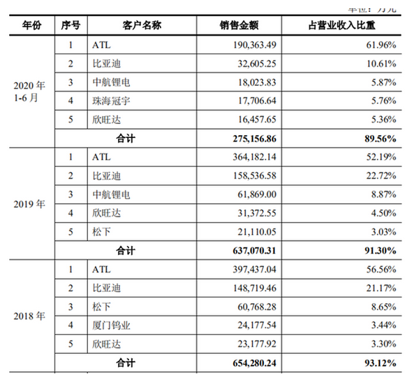 高度依賴ATL、比亞迪等大客戶