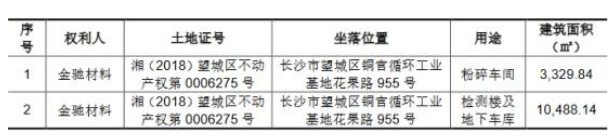 據(jù)悉,上述無證房產(chǎn),1處坐落于長沙市望城區(qū)銅官循環(huán)工業(yè)基地花果路955號,建筑面積3329.84平方米,土地證號為湘(2018)望城區(qū)不動(dòng)產(chǎn)權(quán)第0006275號,系粉碎車間;1處坐落于長沙市望城區(qū)銅官循環(huán)工業(yè)基地花果路955號,建筑面積1.05萬平方米,土地證號為湘(2018)望城區(qū)不動(dòng)產(chǎn)權(quán)第0006275號,系檢測樓及地下車庫。