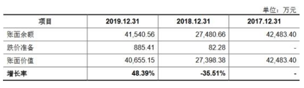 2019年存貨同比增幅48.39%