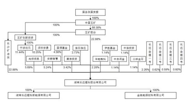 中國五礦集團(tuán)有限公司(以下簡稱“中國五礦”)直接及間接持有五礦股份88.38%的股權(quán)。中國五礦通過五礦股份間接控制長遠(yuǎn)鋰科22.88%股權(quán),通過長沙礦冶院間接控制長遠(yuǎn)鋰科22.88%股權(quán),并通過寧波創(chuàng)元間接控制長遠(yuǎn)鋰科11.44%股權(quán),合計(jì)控制長遠(yuǎn)鋰科57.20%股權(quán),為長遠(yuǎn)鋰科的實(shí)際控制人。
