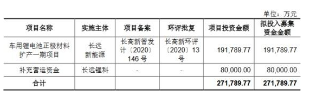 長遠(yuǎn)鋰科本次擬公開發(fā)行股票數(shù)量不超過4.82億萬股,不低于發(fā)行后總股本的25%,發(fā)行后總股本19.29億股。該公司擬募集資金27.18億元,其中19.18億元擬用于車用鋰電池正極材料擴(kuò)產(chǎn)一期項(xiàng)目,8億元擬用于補(bǔ)充營運(yùn)資金。