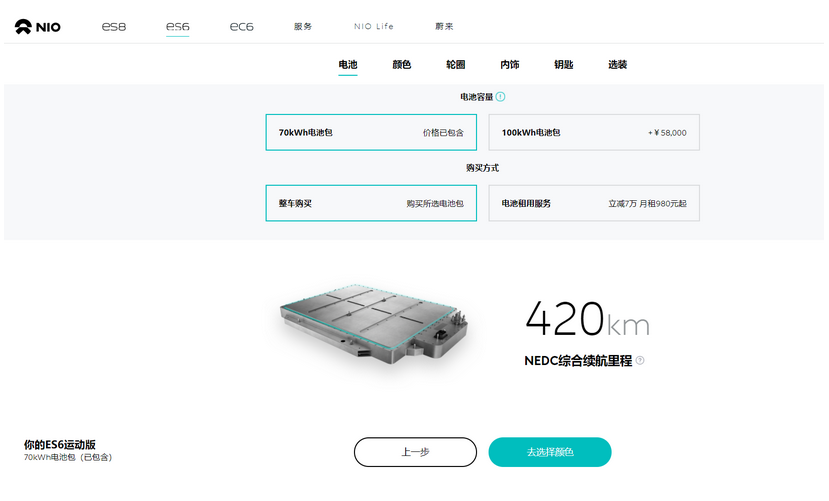 不過在84kWh電池包上線一段時間后,今年5月,蔚來官網(wǎng)顯示84kWh電池包處于售罄狀態(tài),而在此次100kWh上線之后,蔚來官網(wǎng)上的新車配置過程中已不見84kWh電池包的痕跡,只有70kWh和100kWh電池包兩種選擇。