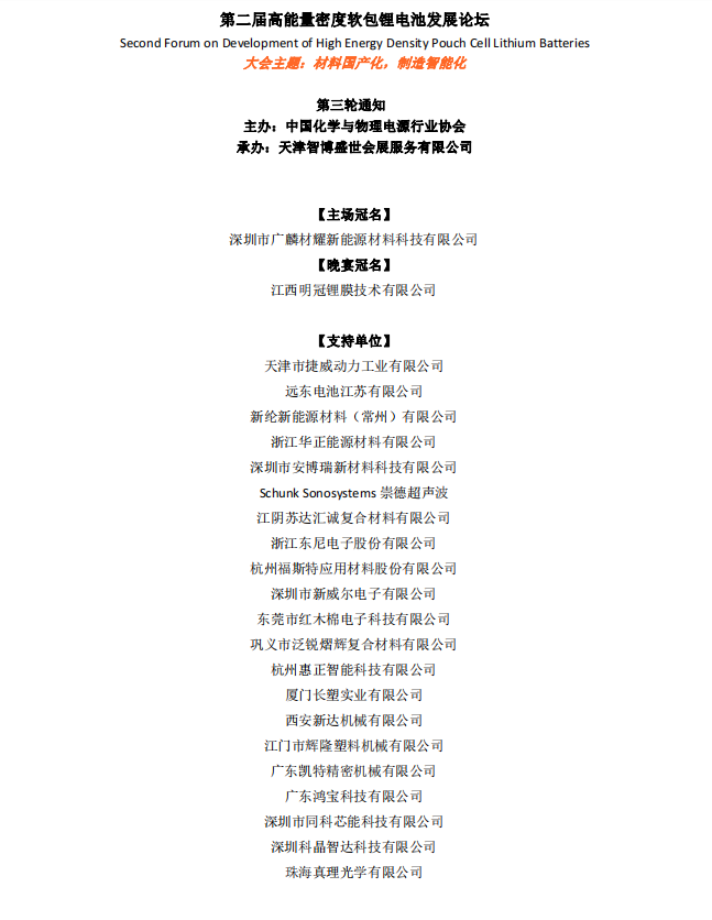 第二屆高能量密度軟包鋰電池發(fā)展論壇第三輪通知