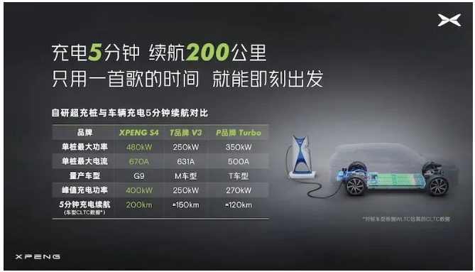 值得注意的是,今年8月,在小鵬汽車超級補能發(fā)布會上,小鵬發(fā)布了S4超快充樁,最大輸出功率達480kW、單樁最大輸出電流達670A。在S4超快充樁的支持下,小鵬G9實現充電5分鐘,續(xù)航200公里。