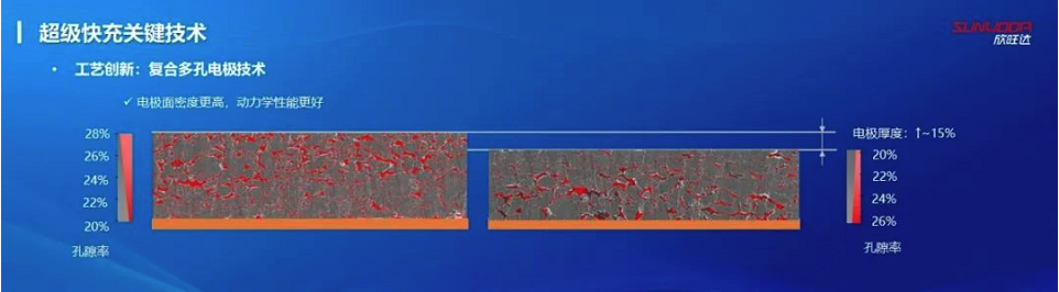 工藝創(chuàng)新方面,通過復合多孔電極技術,電芯電極厚度增加約15%基礎上,獲得更高的能量密度,以及更好的動力學性能;