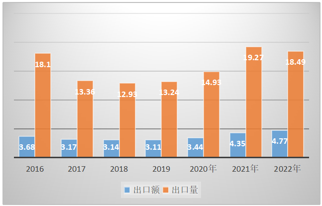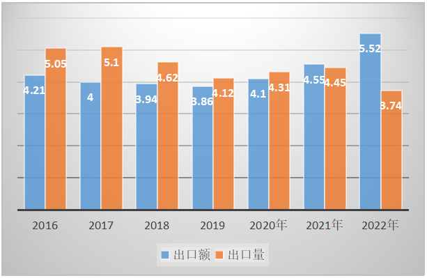 1、2022年鎳鎘蓄電池出口量為0.66億只,2021年出口量為0.47億只,同比上漲了40.43%。2022年鎳鎘蓄電池出口額為0.61億美元,2021年出口額為0.81億美元,同比減少了24.69%。