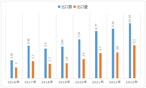 四、2016-2023年中國(guó)各種電池產(chǎn)品出口額、出口量及變化趨勢(shì)(出口額單位:億美元;出口量單位:億個(gè))