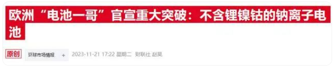 去年,Northvolt宣布公司鈉離子電池技術(shù)在能量密度方面取得了重大突破,其研制的鈉離子電池峰值能量密度超過每公斤160瓦時(shí),并且不含鋰、鎳、鈷和石墨。