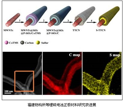 在科技部“973”計(jì)劃、國(guó)家自然科學(xué)基金項(xiàng)目的支持下,中國(guó)科學(xué)院福建物質(zhì)結(jié)構(gòu)研究所結(jié)構(gòu)化學(xué)國(guó)家重點(diǎn)實(shí)驗(yàn)室官輪輝研究小組與新加坡南洋理工大學(xué)徐梽川博士合作,通過(guò)新穎的結(jié)構(gòu)設(shè)計(jì),將多壁碳納米管填充在空心的多孔碳納米管中,合成出一種新型的管中管復(fù)合碳納米材料。作為硫的優(yōu)良載體,該材料有效提高硫的導(dǎo)電性,抑制多硫化物的溶解,并提供大的孔體積來(lái)提高硫的負(fù)載量。合成的硫/碳復(fù)合材料作為鋰硫電池的正極材料,表現(xiàn)出高的比容量、良好的循環(huán)性能和優(yōu)異的倍率性能。該研究表明,設(shè)計(jì)合成具有大孔體積的復(fù)合碳材料可作為一種有效的策略來(lái)提高鋰硫電池的電化學(xué)性能和能量密度,相關(guān)研究成果發(fā)表在《先進(jìn)材料》上(Adv. Mater., DOI: 10.1002/adma.201401191)。