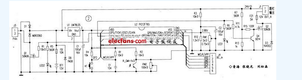 圖 是用:PIC12F675單片機制作的太陽能路燈控制器電路。 PIC 12F 675 是 8 引腳單片機,具有 6個I / 0 口,自帶內(nèi)部 RC 振蕩器 ( 振蕩頻率為 4MHz) 、 4 路 10 位 A /D轉(zhuǎn)換器、一路比較器,該控制器性能穩(wěn)定、可靠,耗電低。