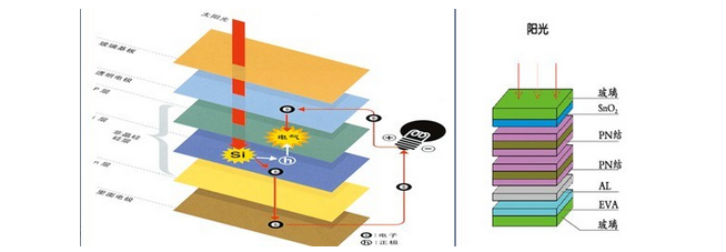 非晶硅薄膜太陽能電池所采用的硅為a-Si。其基本結(jié)構(gòu)不是pn結(jié)而是pin結(jié)。摻硼形成p區(qū),摻磷形成n區(qū),i為非雜質(zhì)或輕摻雜的本征層。