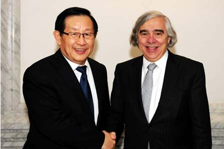 全國(guó)政協(xié)副主席、科技部部長(zhǎng)萬(wàn)鋼與美國(guó)能源部長(zhǎng)莫尼茲