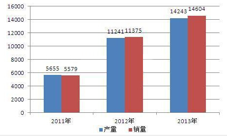 2011-2013年中國(guó)電動(dòng)汽車市場(chǎng)銷售額情況(單位:輛)