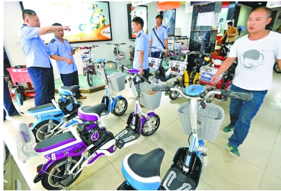 記者再次暗訪時,正好遇到工商執(zhí)法部門的檢查。工商執(zhí)法人員要求,所有銷售電動車的店面,必須張貼新的銷售目錄,只有目錄上有的車型,才能出售,否則就要受到處罰。