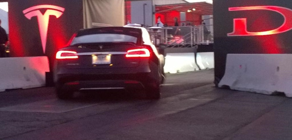 特斯拉四驅(qū)版Model S P85D駛?cè)氚l(fā)布會現(xiàn)場
