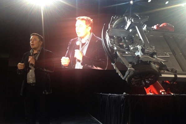 首席執(zhí)行官艾倫·馬斯克將這一系統(tǒng)稱之為“一個巨大的進步”,聲稱四驅(qū)版Model S P85D的“技術(shù)已經(jīng)達到一個新的水平。正如大家從網(wǎng)上了解到的,D代表雙引擎,要做到最好,就是造出一臺這樣的車。因此,讓我們來推出這個‘小巨人’, 他指著Model S P85D的底盤,炫耀著前部和后部的電動機,“能夠以毫秒調(diào)節(jié)前后驅(qū)動?,F(xiàn)在,加速變快了一點,最高時速也高了一點,效率增加。電動汽車的續(xù)航里程因為四 驅(qū)而大幅提升。這臺四驅(qū)車就像是你自己的私人過山車......該車將有三種設(shè)置:正常,運動和瘋狂。”(臺下眾人狂笑)