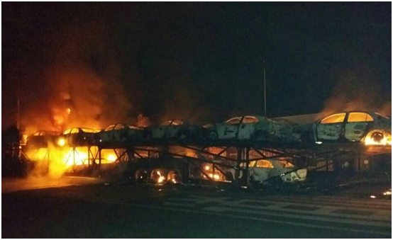 最近20輛從比亞迪西安工廠運往重慶的新能源插電式混合動力“秦”,在京昆高速途徑安康時偶遇大火,幾乎全部報廢。對于著火原因,分析稱為運載半掛車的后輪起火所引起的,而經(jīng)過烈火1小時燃燒后,秦的后備箱仍然完整,電池并未發(fā)生爆炸。