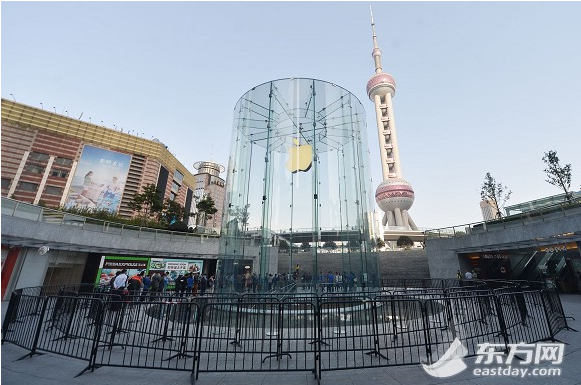 蘋果旗艦店前空空的環(huán)形圍欄